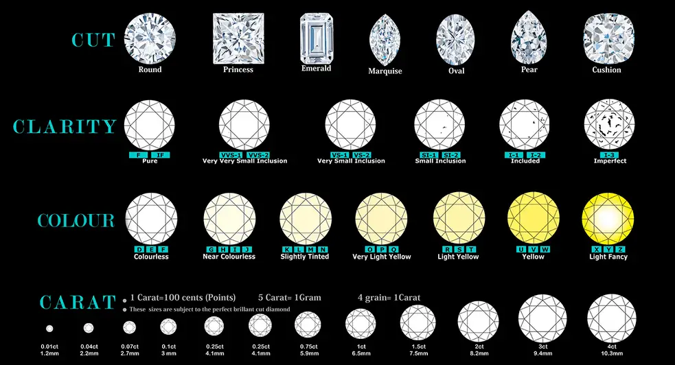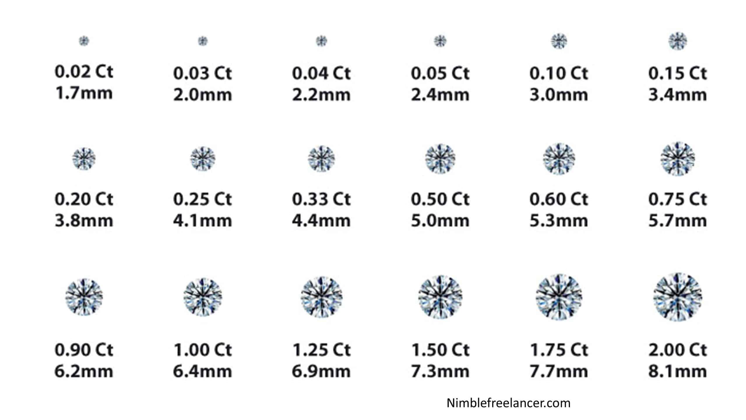 For example, I will show you the shape of the round diamond in the carats of the diamond scale image below:
