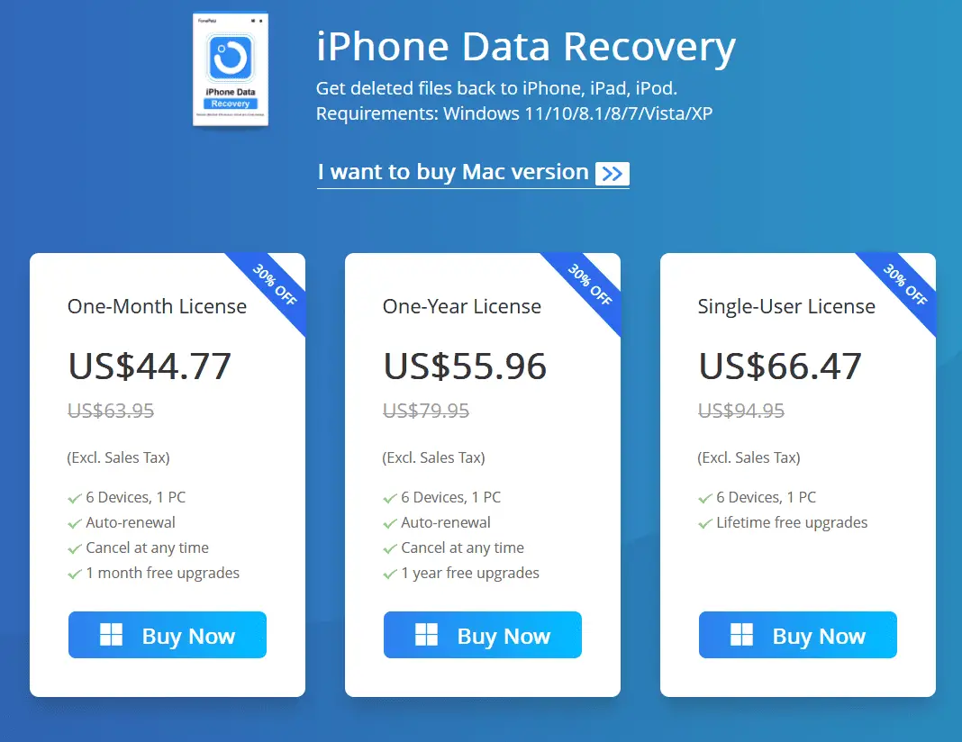 - FonePaw iOS Data Recovery ($66.47 price for a lifetime license)