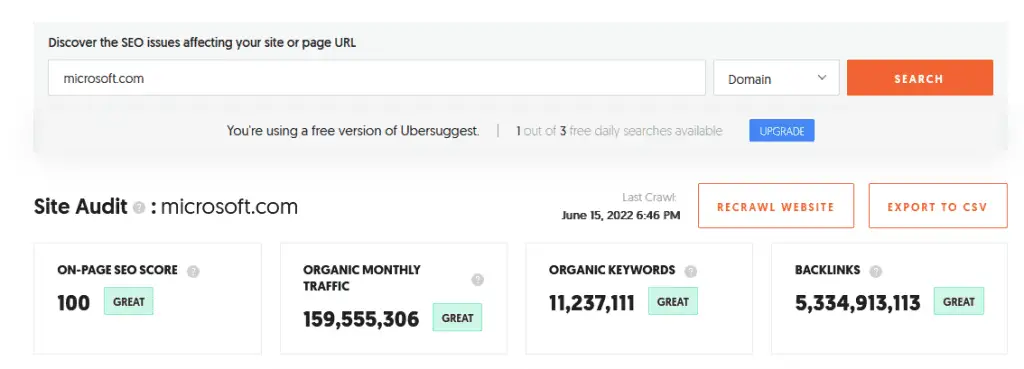 Ubersuggest offers a thorough site analysis to ensure that your website is healthy and well-structured, and that’s only the beginning. When a site audit identifies any faults on your website, it will list those issues and their SEO effect. The site audit tool covers search engine optimization (SEO) and website-related concerns that might harm your position. It would be much better if this tool could show you how some flaws affect your website’s rating.