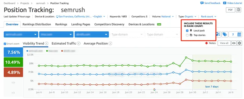 Position tracking is an effective tool for measuring the efforts you’re putting into the SEO of your website. You can analyze the desktop and mobile data and handle the Google ranking. Another benefit of this tool is that you can obtain several keywords that can trigger features of SERP by using the database filter.