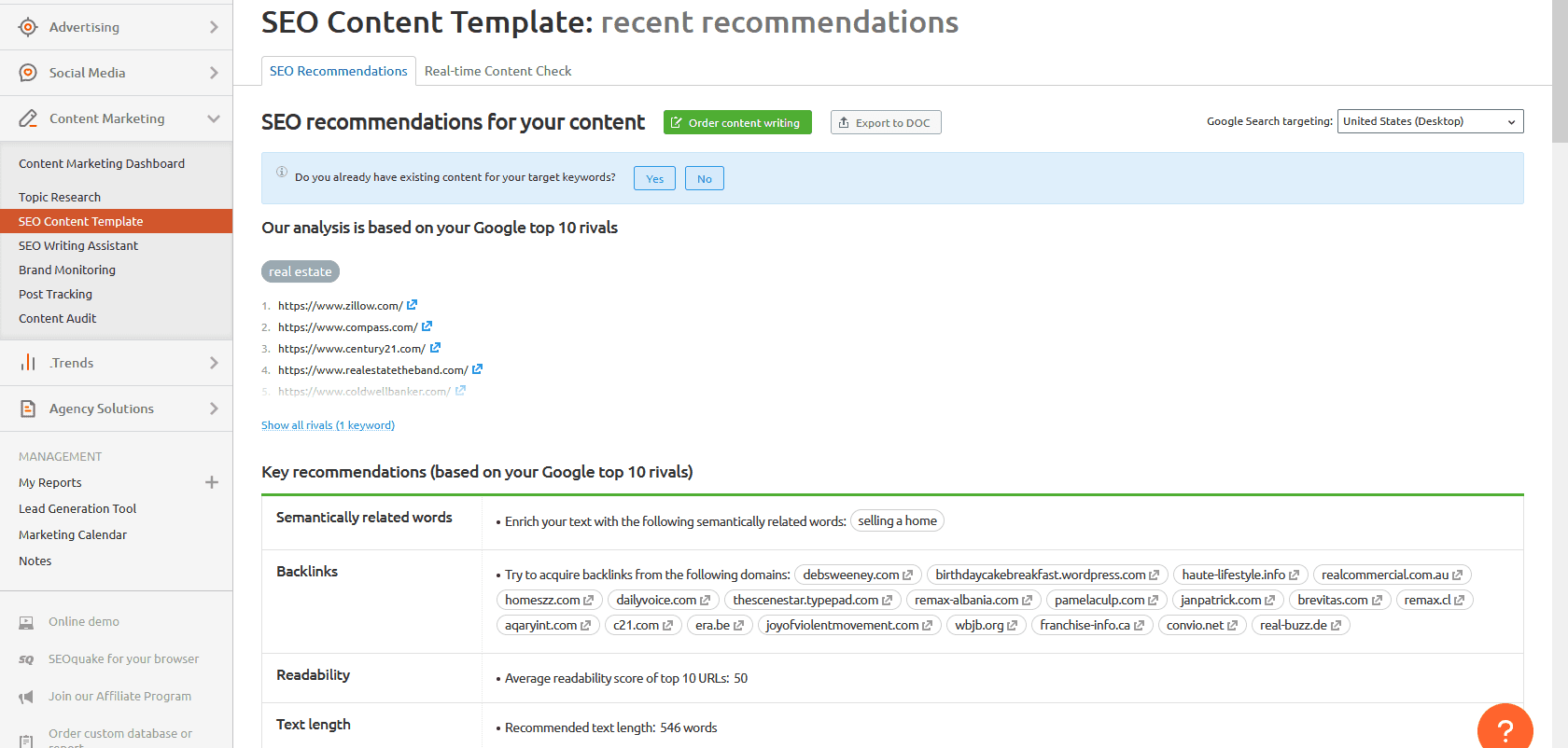 SEO Content Template: If the content you add to your website is optimized to improve the visibility on search engines, then the chances are higher that your website will rank. The traffic on your website will increase. To accomplish this task, Semrush provides you with content templates and keyword suggestions based on your keywords. These templates are created by analyzing the content of some top-ranking websites.